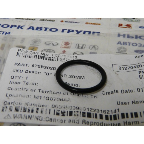 670B2020 "0" RING,20MM (УПЛОТНИТЕЛЬНОЕ КОЛЬЦО KAWASAKI 670B2020)