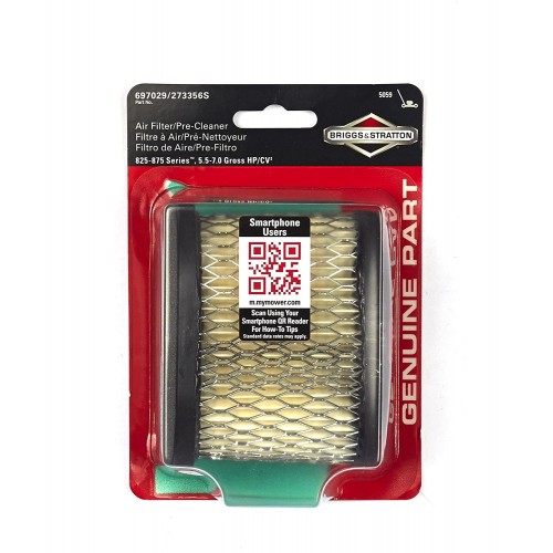 Replaces Briggs & Stratton Service Part #697029S (Air Filter), and #273356S (Pre-Cleaner)