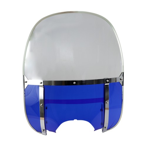 Type: Cruiser Style: Tall Color/Finish: Blue / Clear Material: Acrylic (PMMA) Height: 22-1/8" Mounting Style: Fixed Units: Each Riding Style: Street Base Color: Blue / Clear